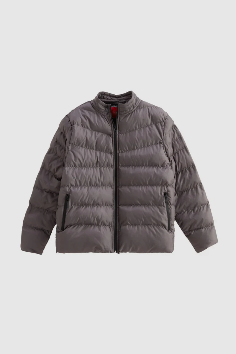 سترة بفر رمادية مقاومة للرياح ومليئة بالألياف ضيقة