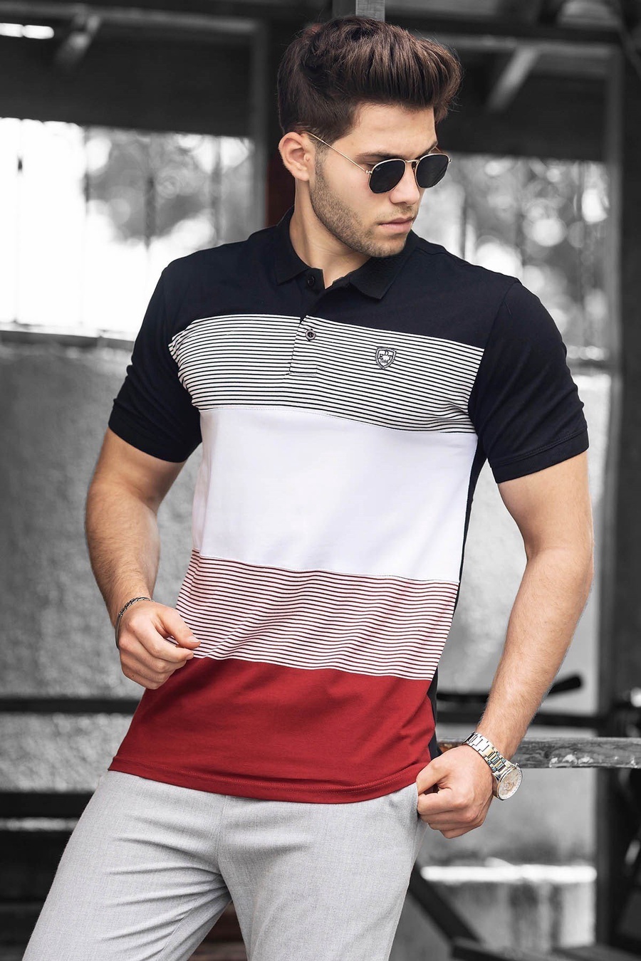 الياقة: رقبة بولو